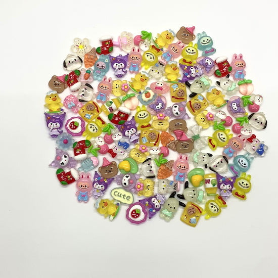 - 100 Pcs Charms Value Set | Randomly mixed assorted resin charms in cute, colorful designs—perfect for decoden, slime, resin crafts, cabochon projects, and DIY decorations.