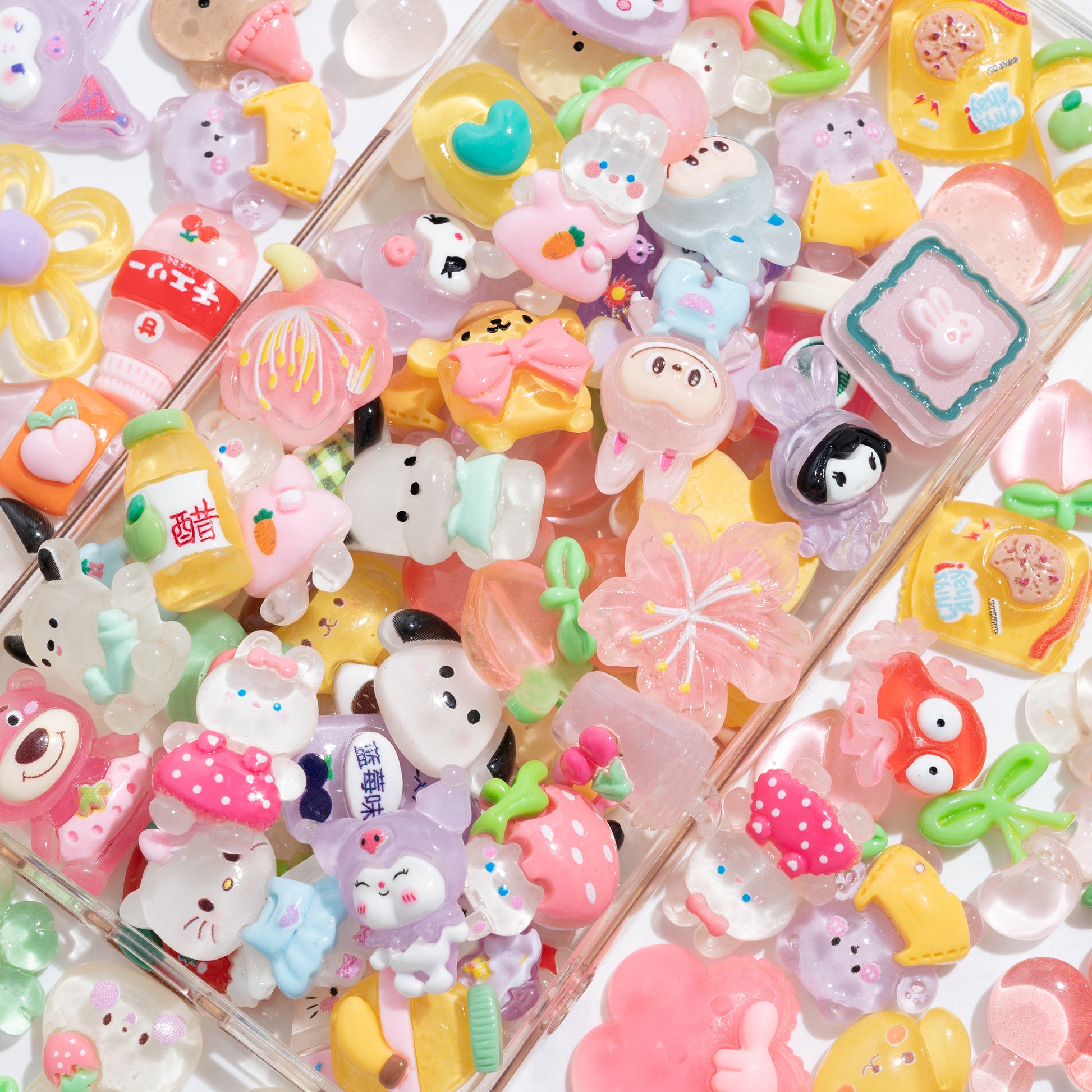 100PCS Decoden Charms, Sanrio Decoden Charms, Resin Charms, Cabochon, Decoden Supplies, Decoden Cream Glue, Flatback Charms, Kawaii Charms